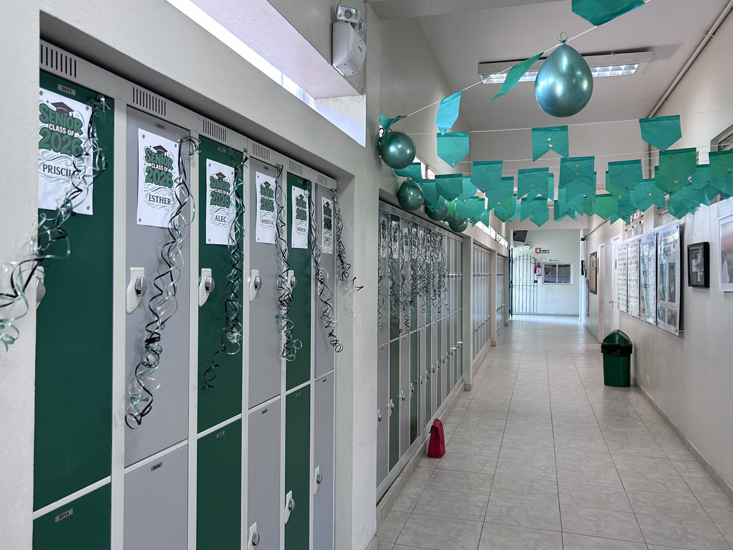 Secondary students were met with the high school locker area and the senior lockers decorated by the senior moms this year. [by Dr. Meier]